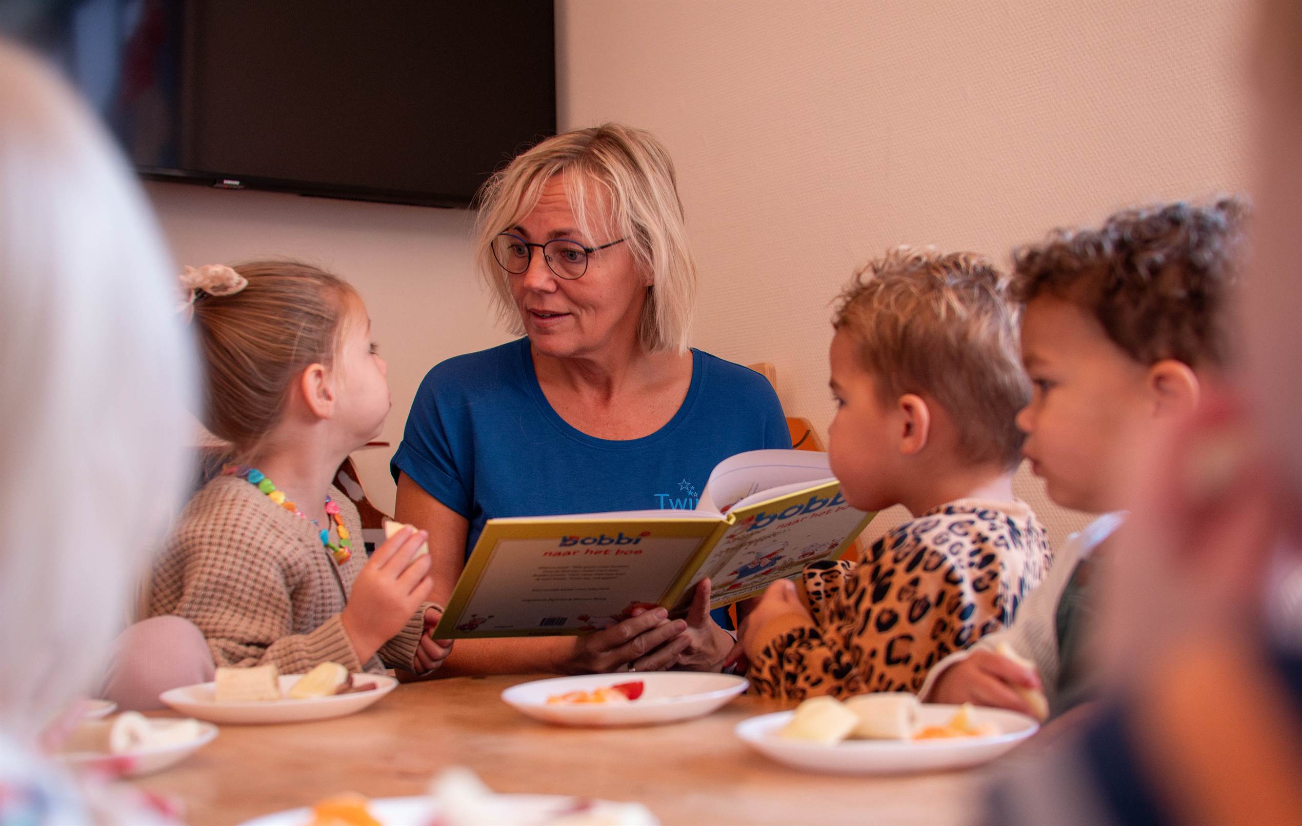 De periode van 0 tot 4 jaar is de meest taalgevoelige leeftijd van een kind. Daarom is het van belang dat er op het kinderdagverblijf aandacht wordt geschonken aan de ontwikkeling van taal en spraak. De omgeving van het kind heeft een grote invloed op die ontwikkeling. Kinderen gaan praten omdat ze in een omgeving verblijven waar met en tegen hen wordt gesproken. Volwassenen spelen daarbij een belangrijke rol. Wij werken volgens het principe: zeggen wat je doet en benoemen wat je ziet. Zo benoemen de leidsters op Kindercentrum Twinkel wat ze zien, voelen of doen, zowel van zichzelf als van de kinderen. Ze doen dat niet alleen in één-op-één situaties met een kind, maar ook in groepsverband.